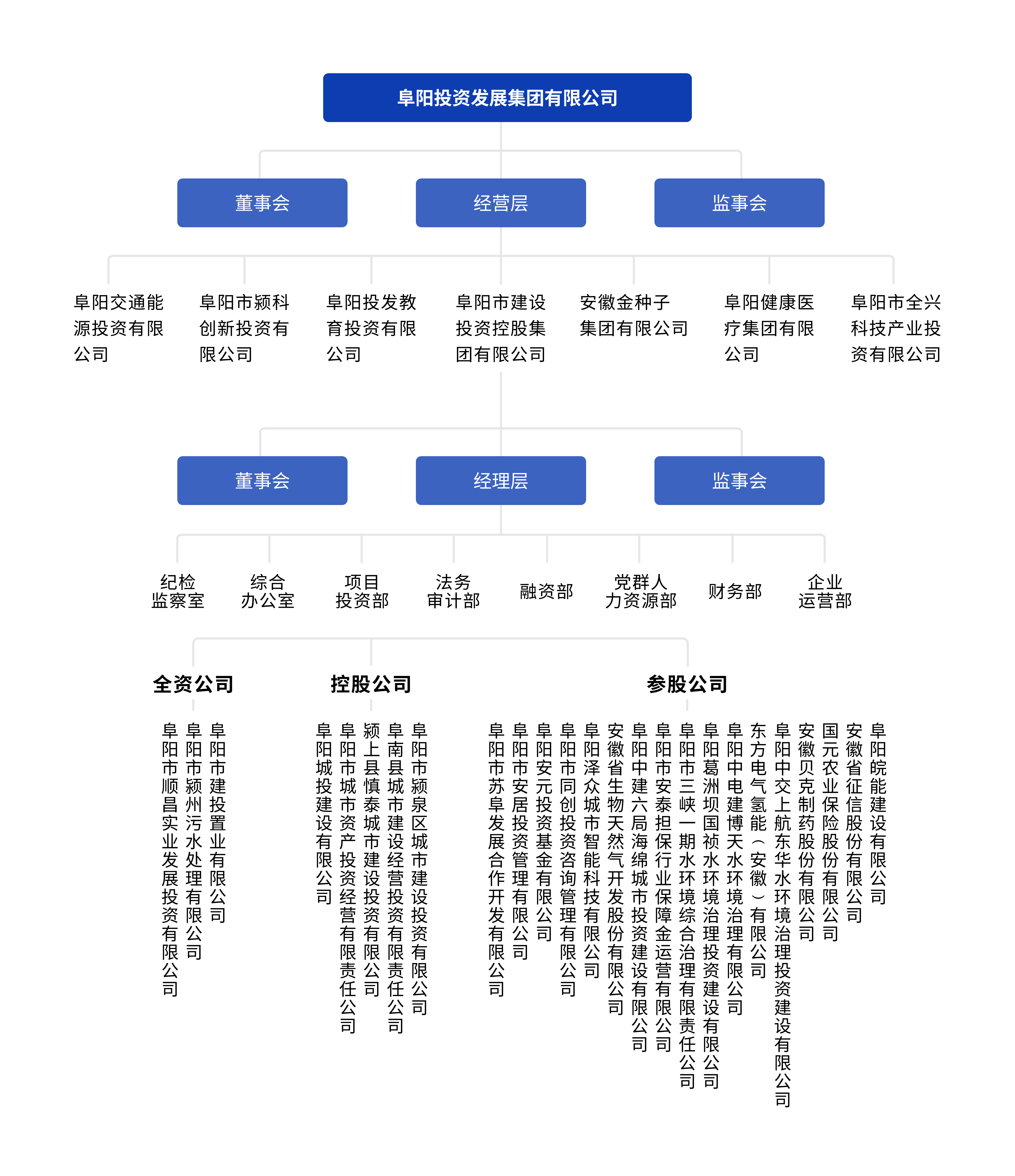 阜陽市建設投資控股集團有限公司(簡稱阜陽建投集團)是阜陽市委、市政府為加快阜陽城市基礎設施建設步伐,深化城市建設投融資體制改革,于1998年批準設立的具有獨立法人資格的國有獨資公司。目前,公司注冊資金20億元,總資產1167億元,位列全國城投行業前30強,信用等級AA+。主要職能是城鎮基礎設施、能源、交通、保障房、安置房及市政公用事業項目投資、融資、建設、運營、管理,土地整理開發,國有資產經營管理、資產收益管理、產權監督管理、物業管理、資產重組和運營等。