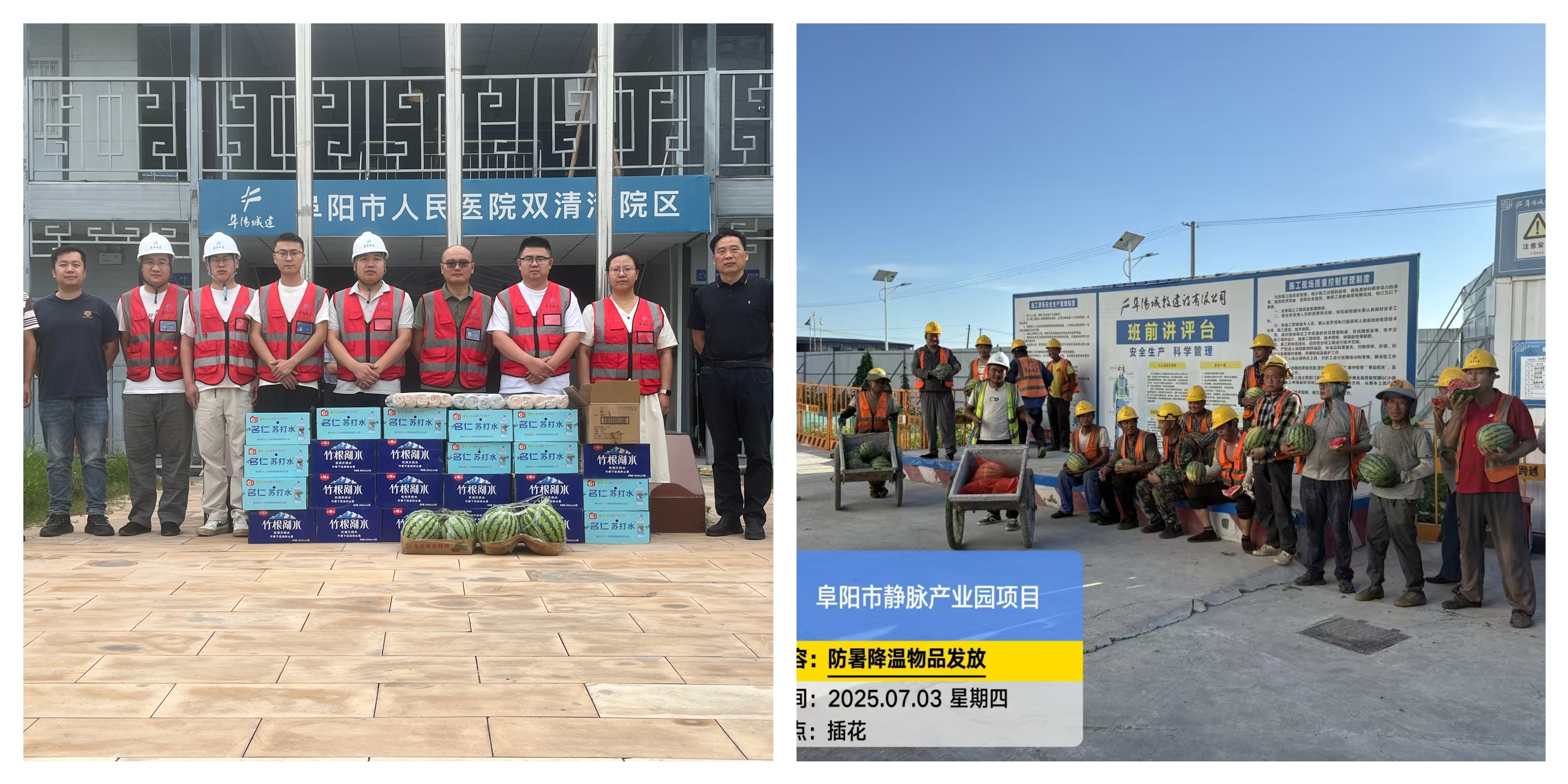 酷暑高溫季節,開展送清涼活動,為員工和工人發放清涼物資和防暑降溫藥品,給員工和工友在炎炎夏日帶去一份清涼。